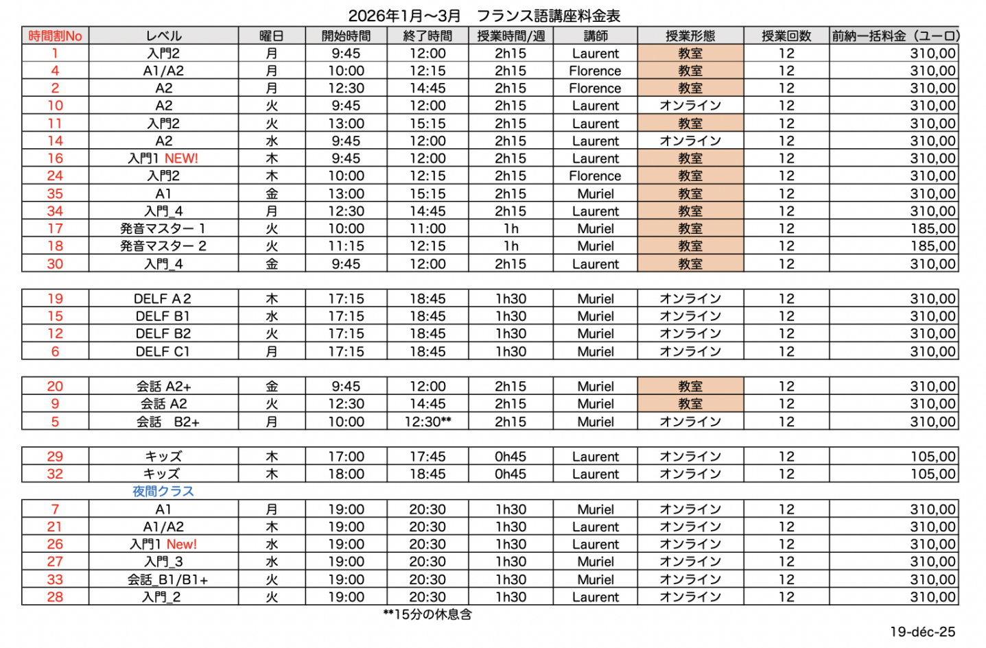 また、お問い合わせ、ご質問は日本人会事務局まで。coursfr.ajf@gmail.com Tel. 01 53 76 17 58