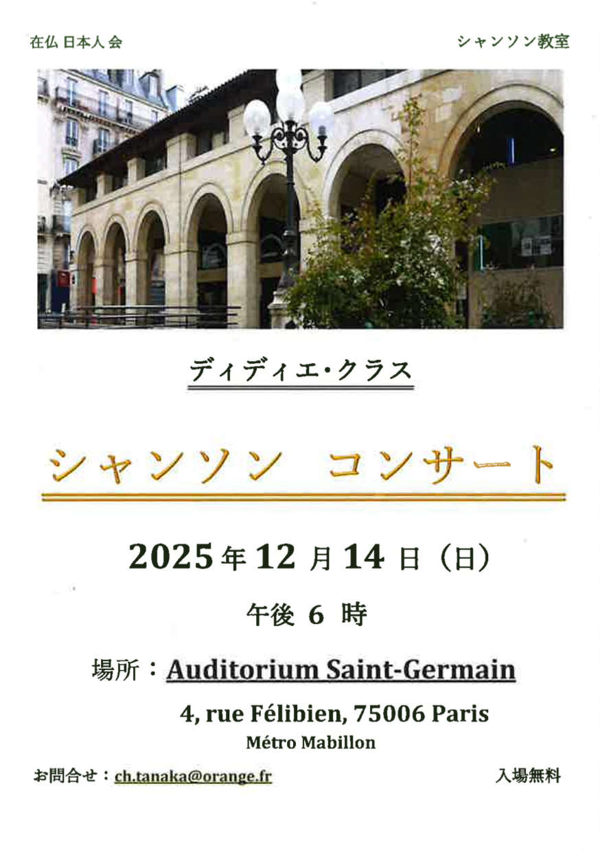 日本人会のシャンソン教室、ディディエクラスの年に一回のコンサートです。