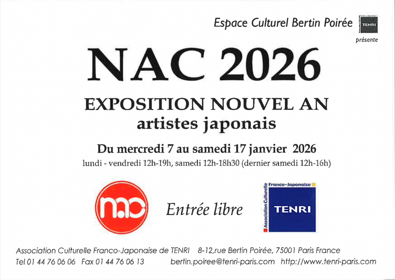 会場: Association Culturelle Franco- Japonaise de TENRI ( 8-12, rue Bertin Poirée 75001 Paris)