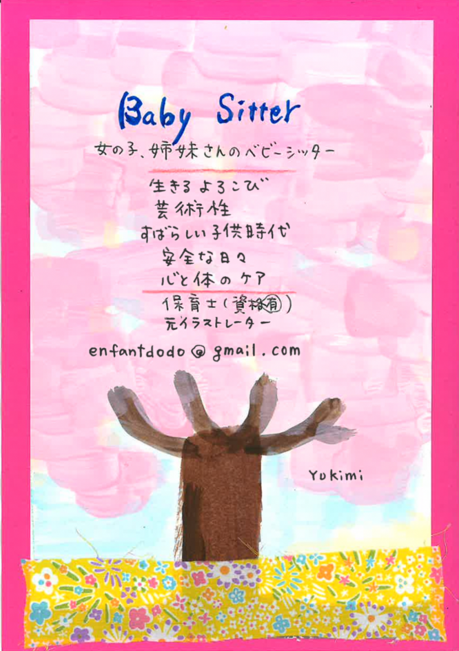東京台東区認可保育園勤務2年、パリ日本人保育園勤務1年、パリ5区の個人宅で一歳と二歳の姉妹さんのベビーシッターを12年。0歳児から保育が可能です。