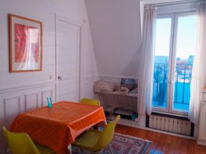 日当たりよくとても静かで快適です。6階の最上階でバルコニーからはパリならではの景観、エレベーターはありませんが絨毯を引き詰めた綺麗なメインの階段を上がっていただきます。(屋根裏用の狭い階段ではありません。)美容健康には最適ですが好き嫌いがあると思います。