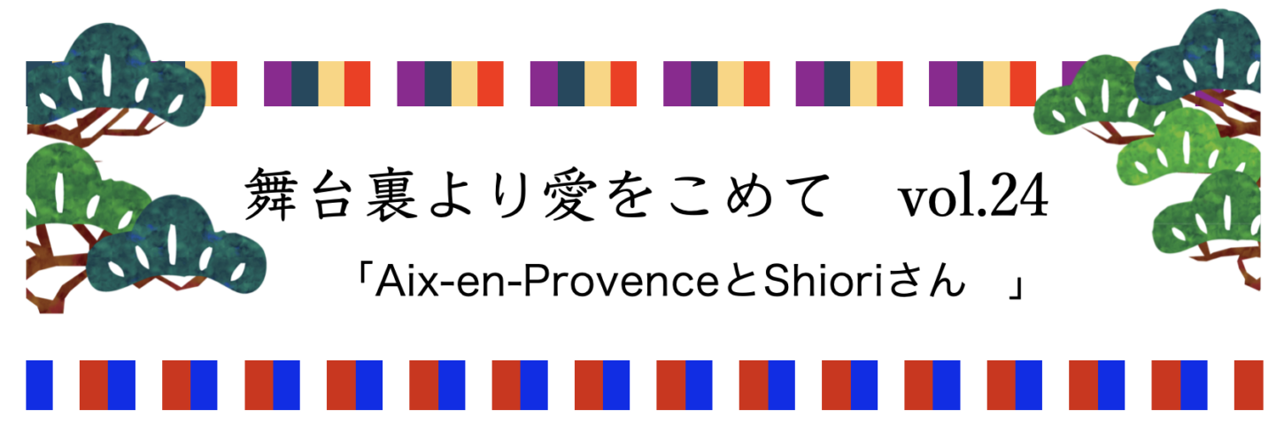 実はAix-en-Provenceの能舞台、わたくしにとりまして大切な思い出の場所でもございます。それは、2015年に出逢いましたShioriさんとの思い出、あるコンサートの受付お手伝いがご縁でございました。その日意気投合しましたわたくし達「わたしも日本文化を紹介する仕事をしています。何か一緒に出来たらいいですね!」と人懐っこいShioriさんのクリクリとした瞳の輝きに吸い込まれましたわたくしは、「はい!是非!」と二つ返事、パリ生活を始めて1年余り、知り合いもそうおらずでありました中、心強いお言葉でした。
