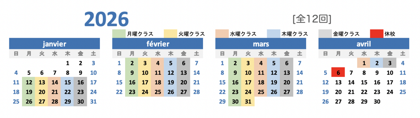 ✳️ 2026年1月-3月期授業スケジュール