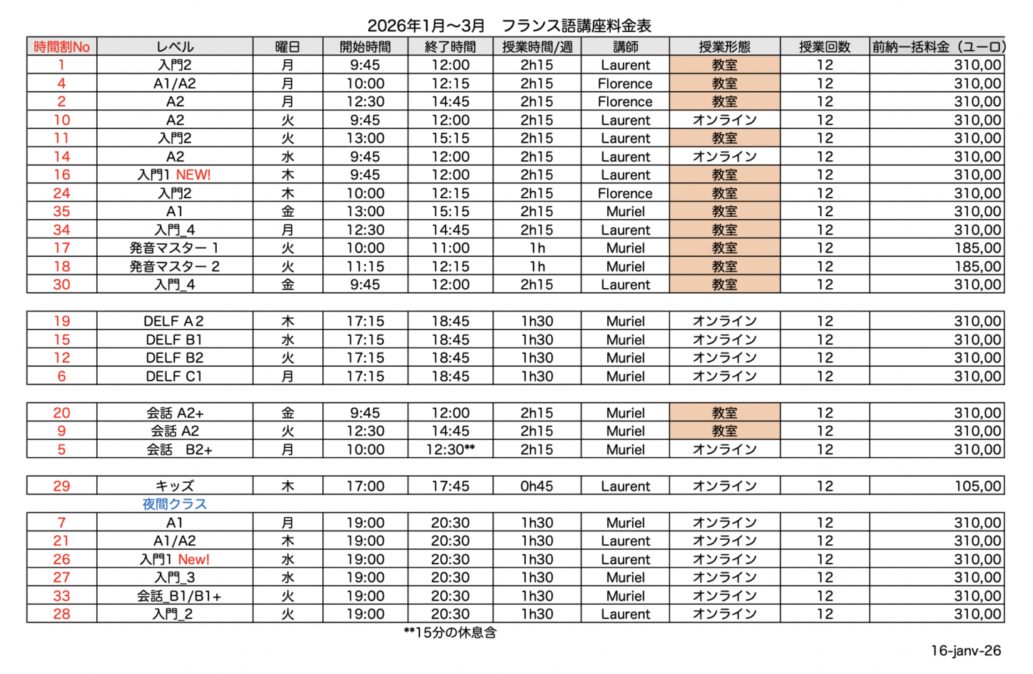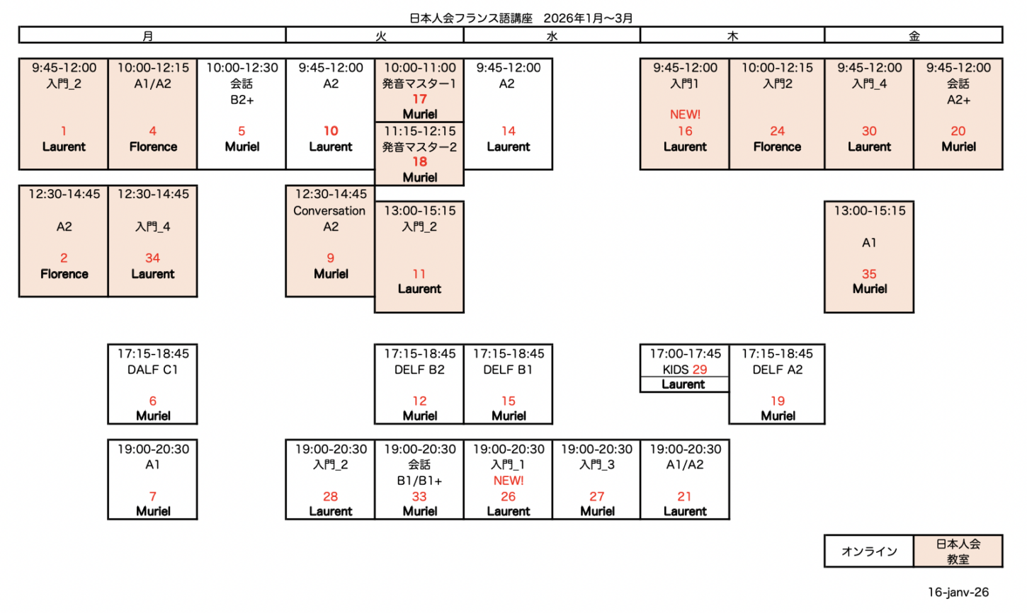 3. 日本人会 フランス語講座 2026年1月〜3月期、生徒募集!