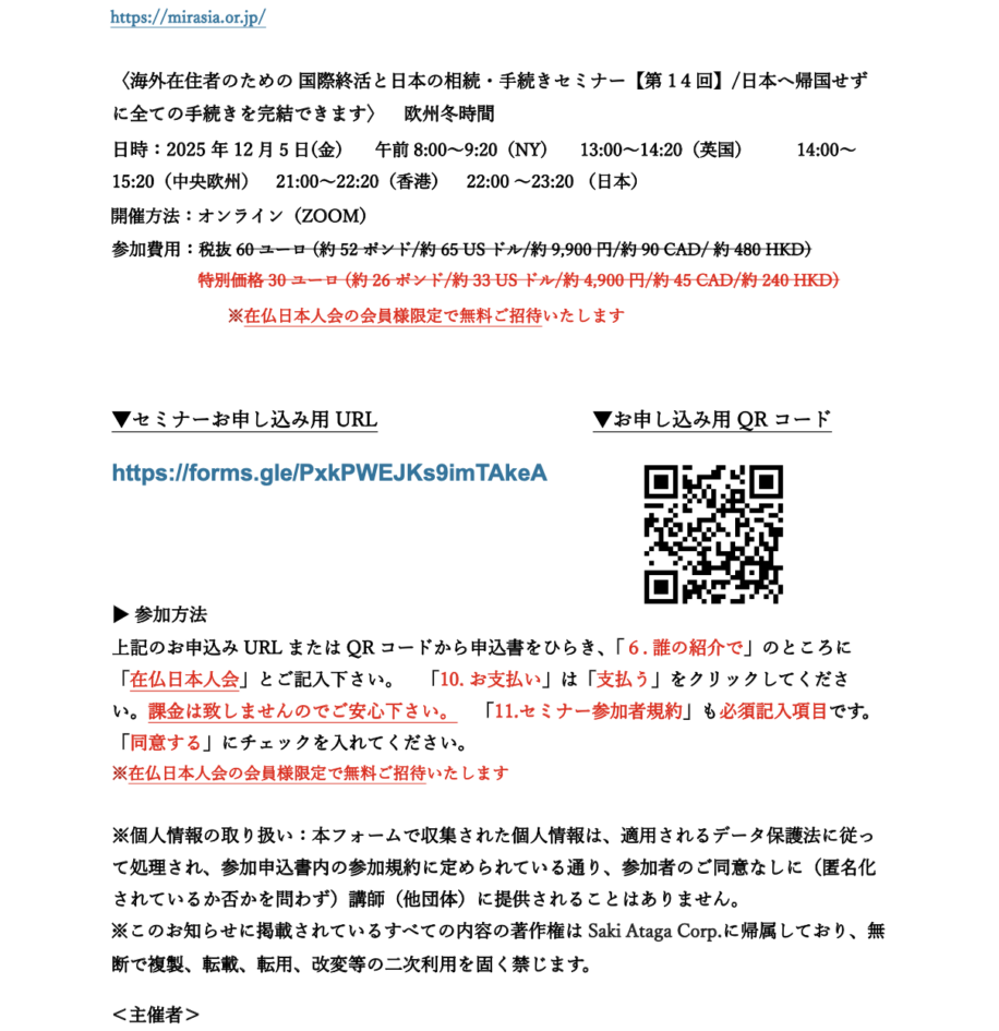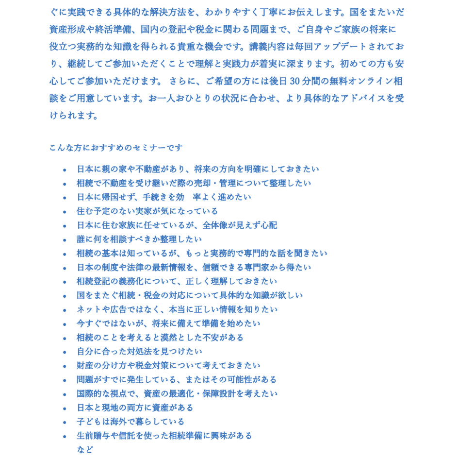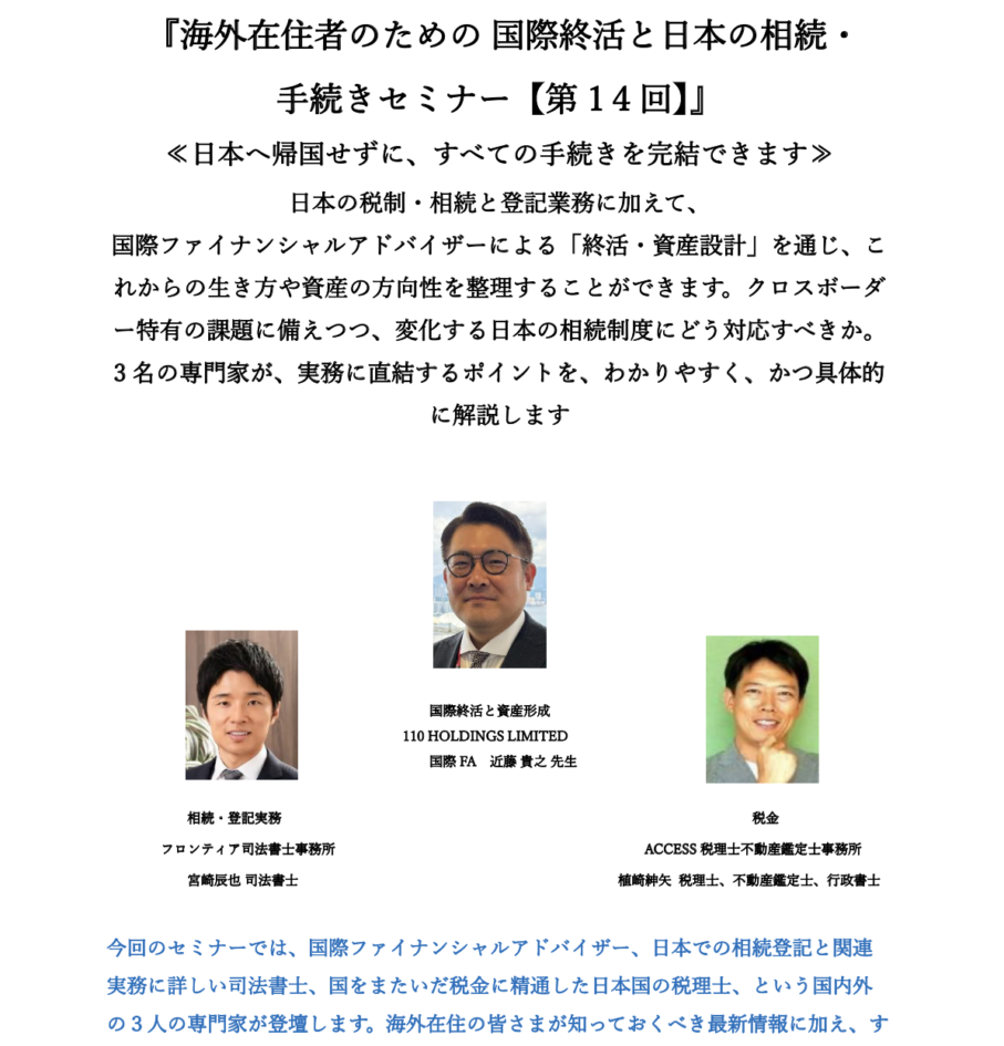 海外在住日本人向け国際終活と日本の遺産相続セミナー 【第13回】